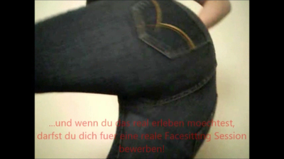 Du bist ihr schon seid längerer Zeit verfallen, nicht wahr, du Sklavenvieh...!? Doch heute hat Mistress Kat etwas ganz besonderes für dich! Sie wird dich mit ihrem geilen Arsch platt machen! Die engen Jeans liegen extra eng und bringen ihre sexy Kurven perfekt zur Geltung! Doch genau die sind es auch, die sich gleich auf deinem Gesicht wiederfinden werden! Deine Herrin will ein Sitzkissen - und DU wirst ihr diesen Wunsch erfüllen...!